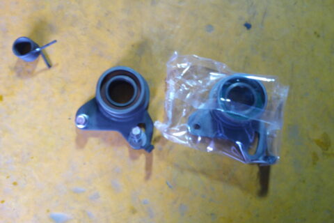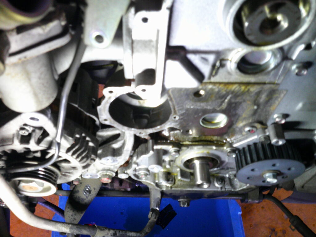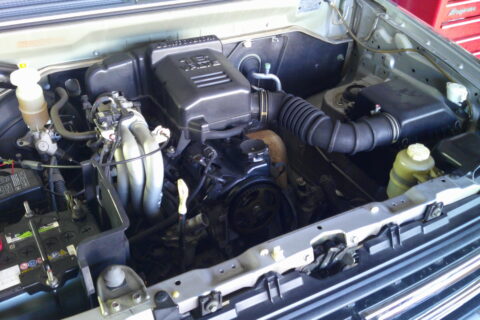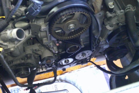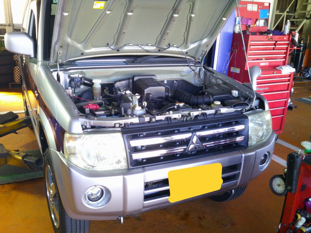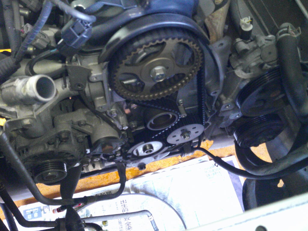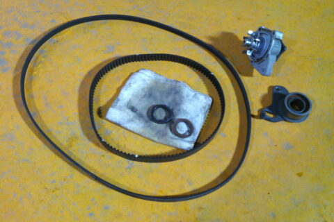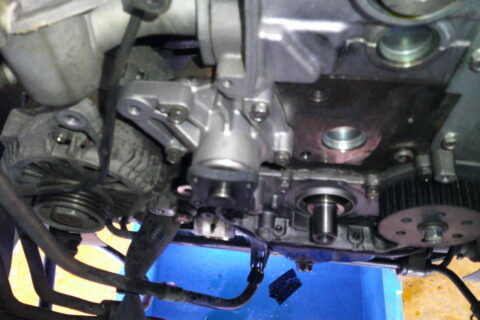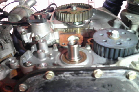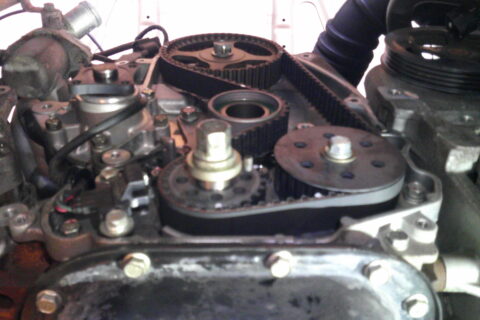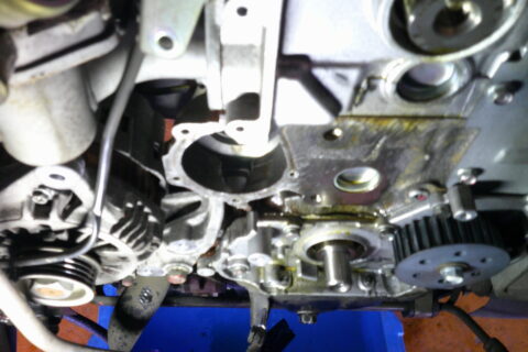 エンジンの外側にあるファンベルトを外し、冷却水を抜いてラジエータを取り外します。