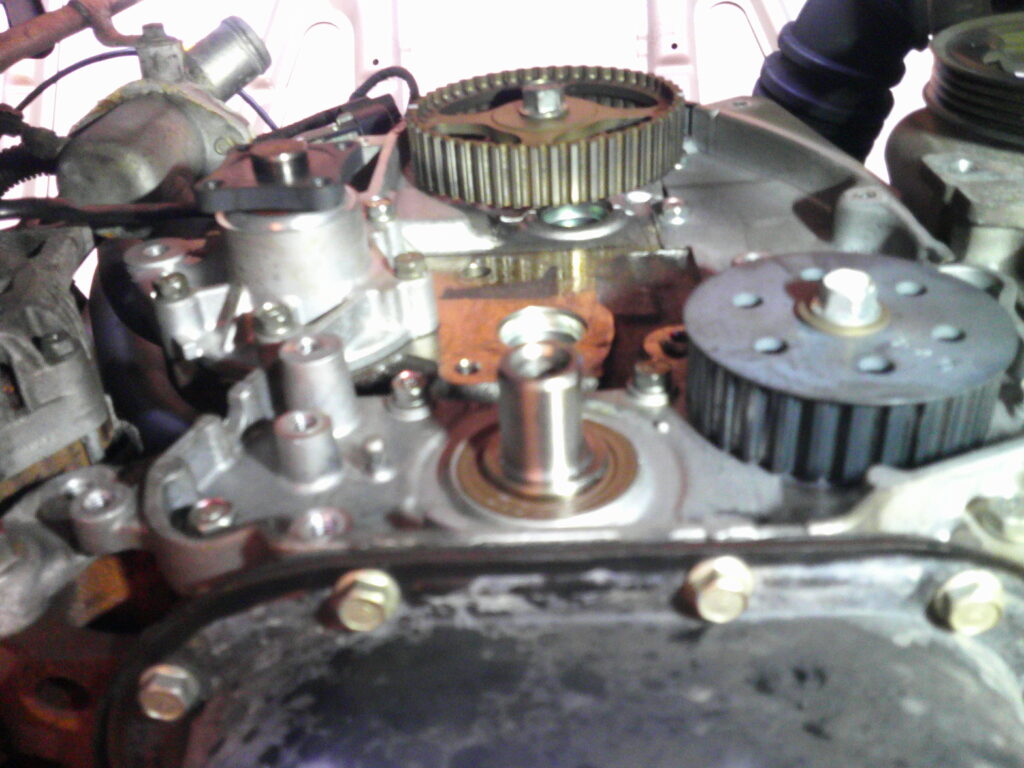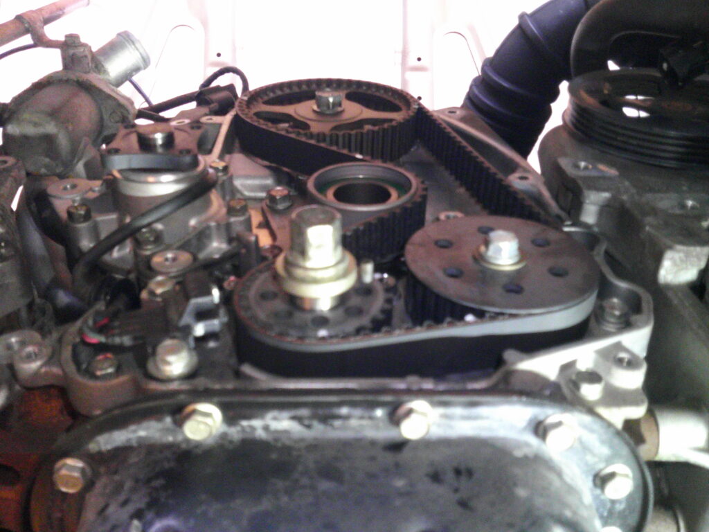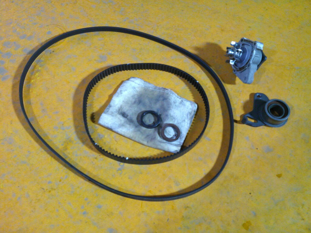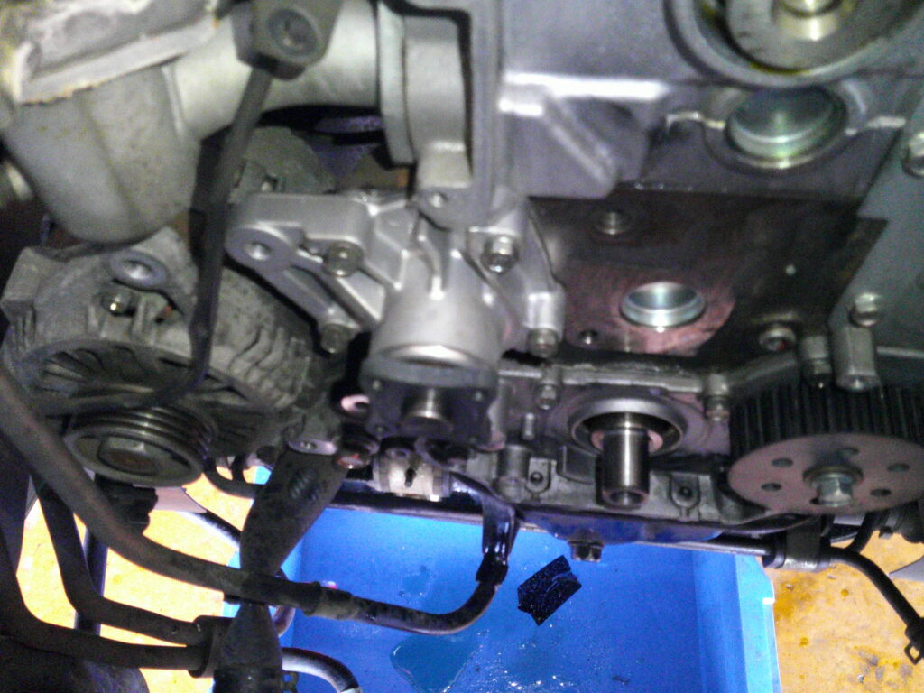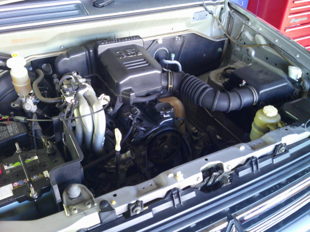 エンジンの外側にあるファンベルトを外し、冷却水を抜いてラジエータを取り外します。