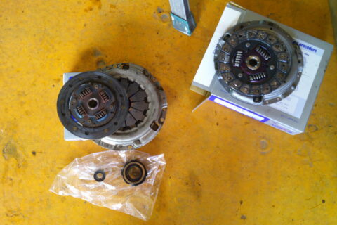画像の左側 取り外した、クラッチディスク・カバー・レリーズベアリング・パイロットベアリング