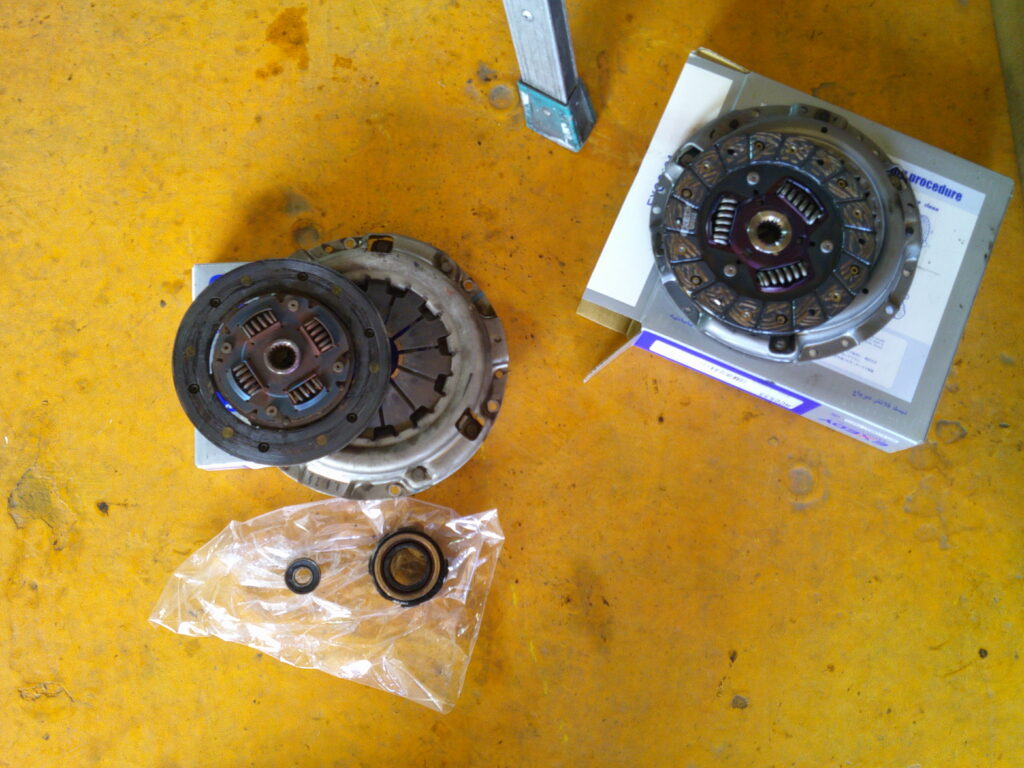 画像の左側 取り外した、クラッチディスク・カバー・レリーズベアリング・パイロットベアリング