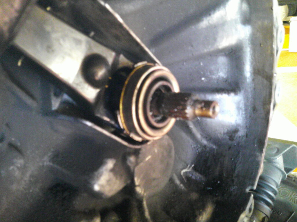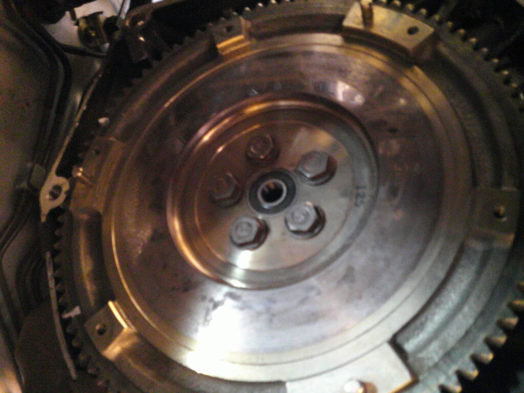 クラッチカバー・ディスクを取外し、フライホイールの真ん中についているパイロットベアリングを交換します。