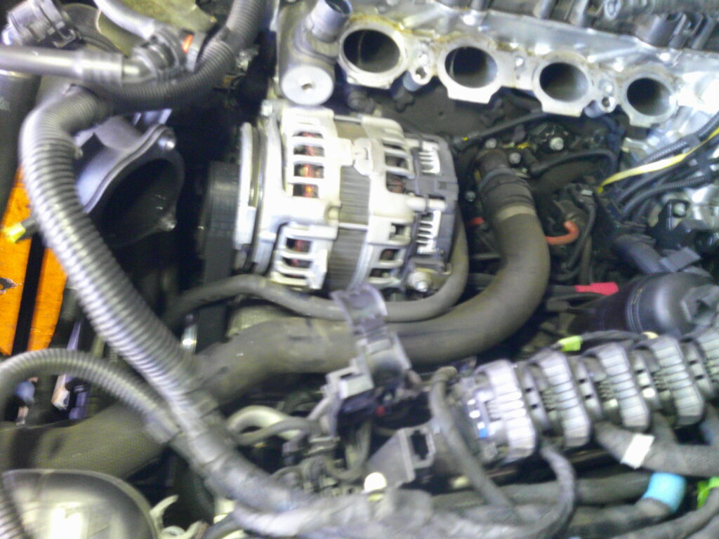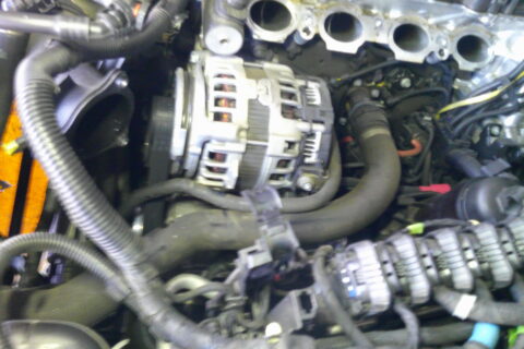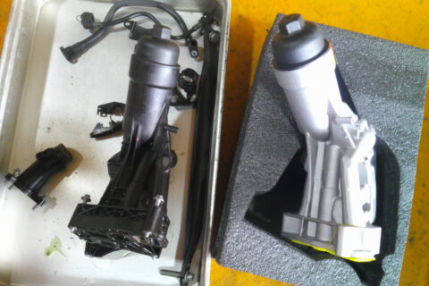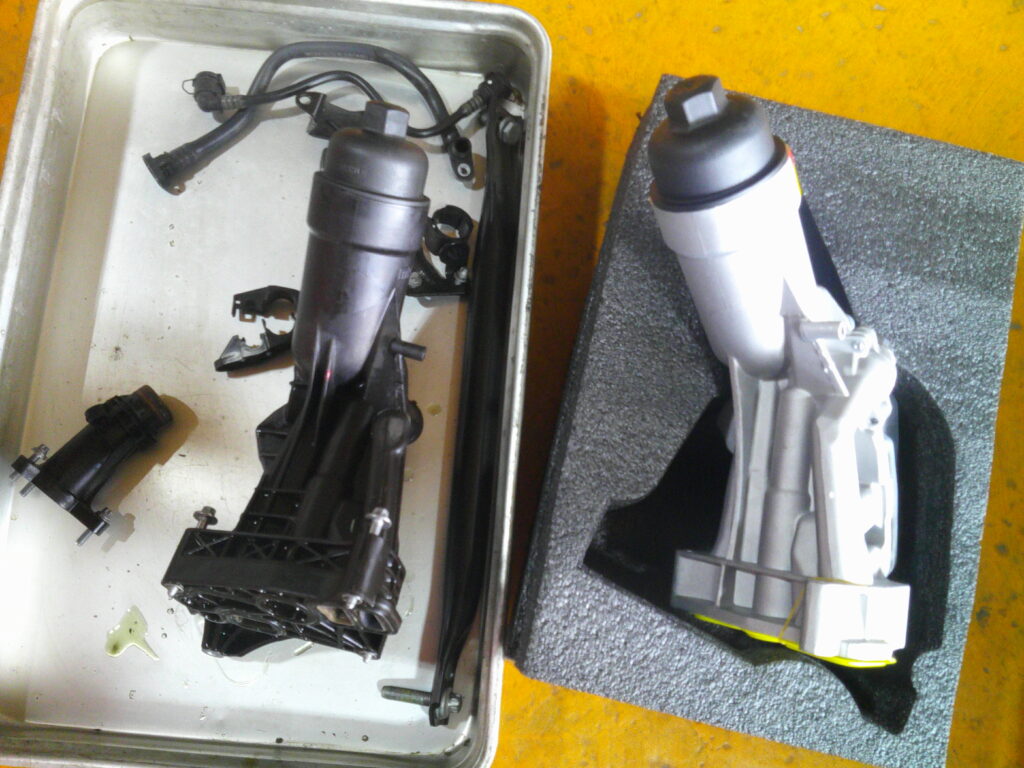 コネクターや配線、配管等、邪魔な物をせっせと取り外して、重い水冷式のインマニを取外し。